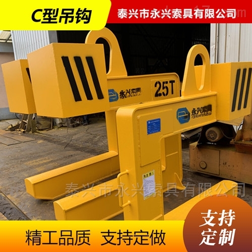 C型吊具主要有吊具体和配重铁组成,主体部分均使用Q355B钢板(优质低合金钢)和钢管拼接而成,截面为箱型结构,具有较好的抗弯曲、扭转 性能,吊具重量轻便,使用寿命长。厂家直销,各种规格型号都可以定制。