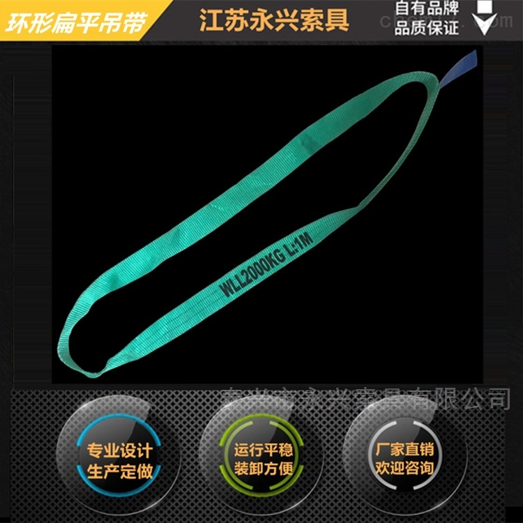 泰兴永兴索具有限公司可以根据客户需要制作单层,多层,四层的扁平环形吊索,它们由聚酯、尼龙和丙纶中的一种原料制作而成,本公司可以提供安全系数是6:1的各种产品。产品符合标准安全要求,客户可以根据自己的需要订购特殊长度的产品。扁平吊带轻便、柔软、安全系数高、使用寿命长、不导电,无触电危险,对腐蚀有很好的抵抗力等优点,正逐步替代钢丝绳索具和链条索具。